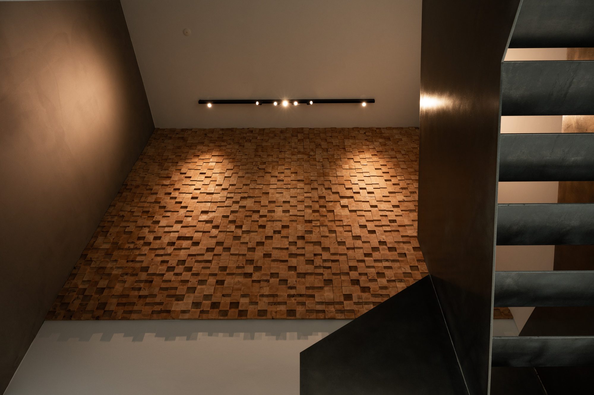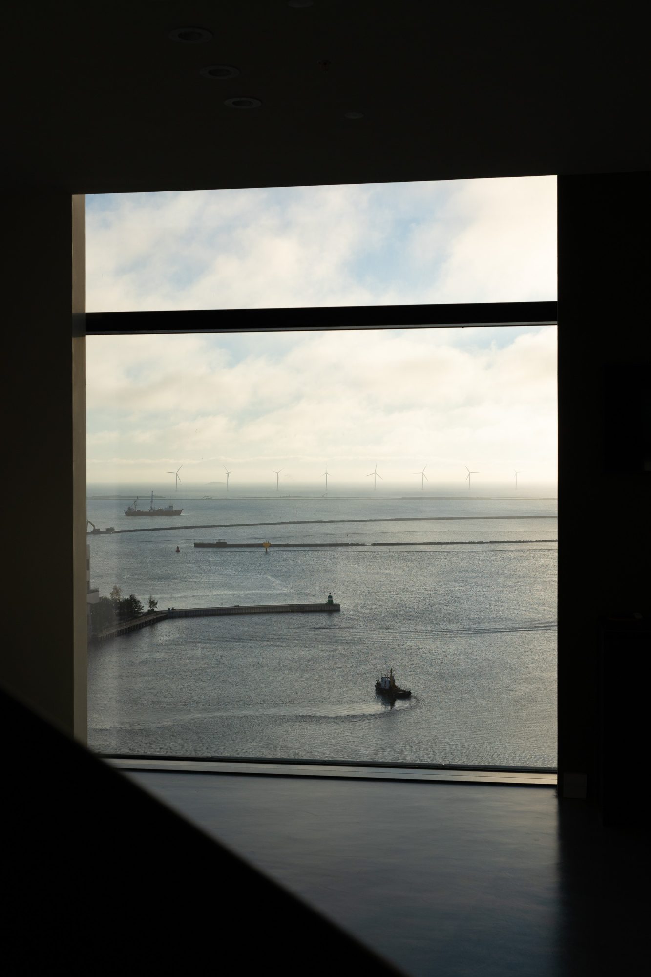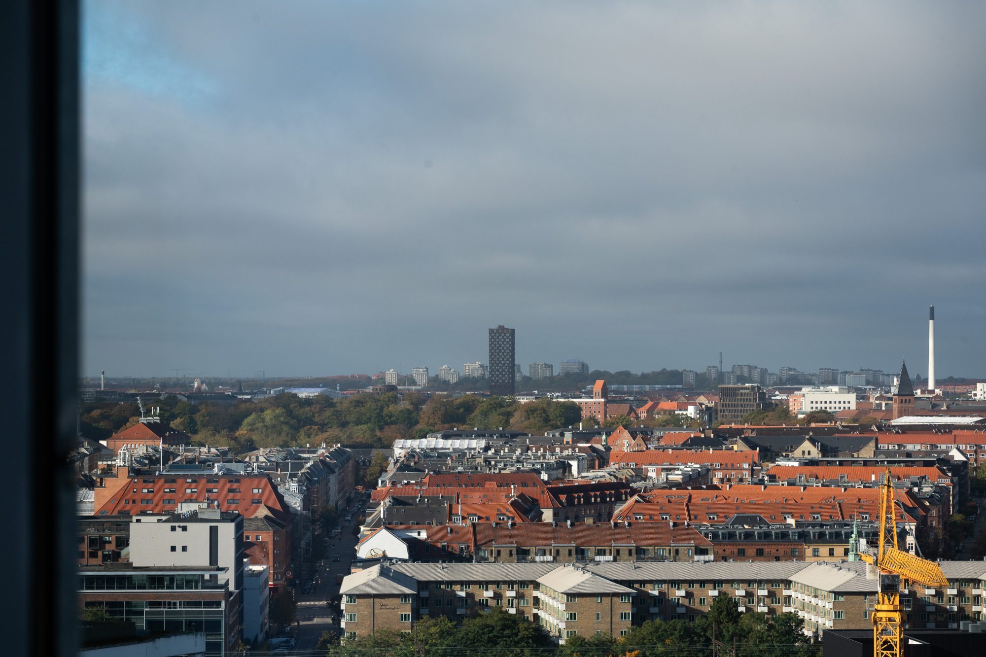 Hele 15. etage er skabt som ét stort rum, hvor den centrerede og brutalistiske ståltrappe understøtter bygningen og områdets industrielle fortid. Rummet indrammer COBE-arkitekternes vellykkede transformation og føles nærmest overvældende.