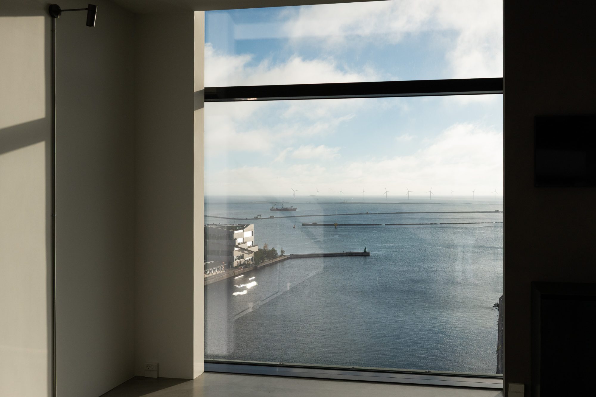 På 16. etage er der tre store værelser, walk-in og to badeværelser, hvoraf det ene byder på morgenbrus med udsigt til Sverige.